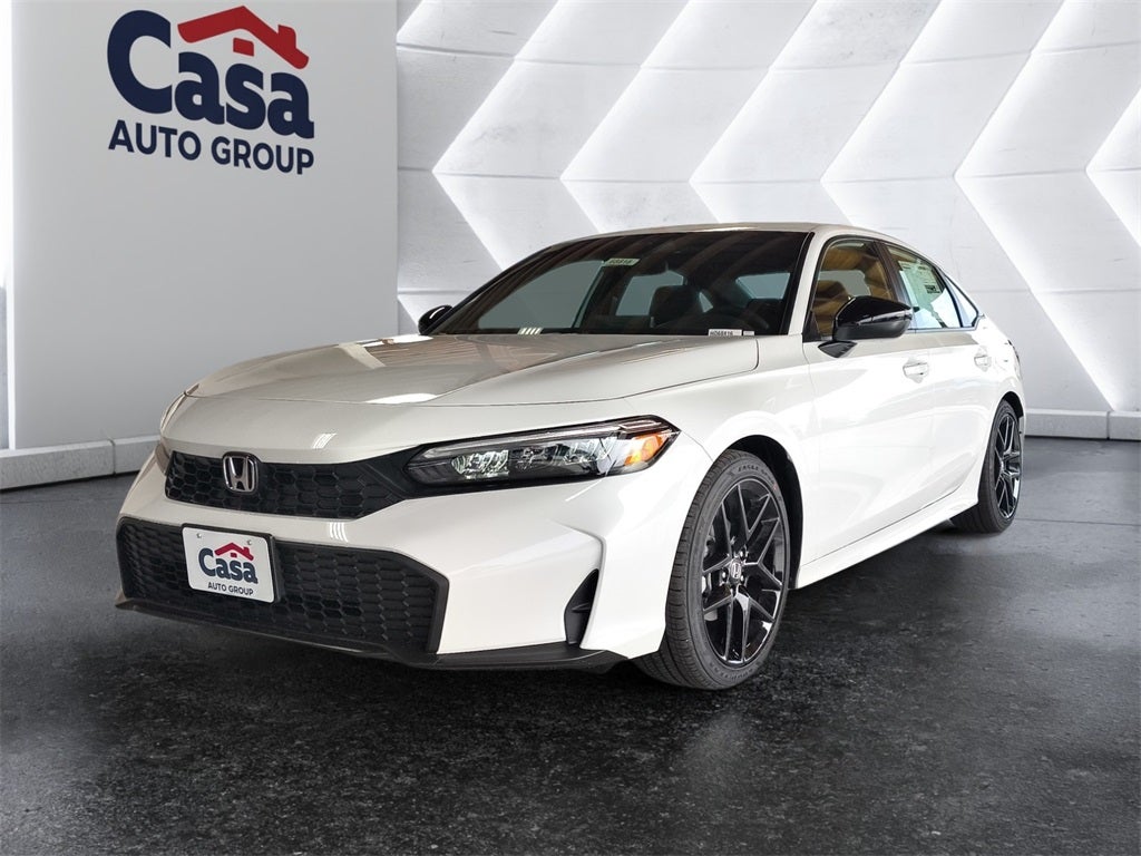 Platinum White Pearl 2026 Honda Civic Sport FWD CVT 2.0L I4 DOHC 16V Black Artificial Leather.