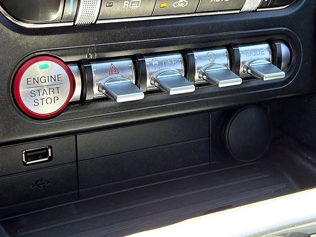 The interior of this Mustang is equally impressive, featuring a SYNC 3 Communications & Entertainment System with an 8-inch touchscreen, Apple CarPlay and Android Auto compatibility, and a premium 9-speaker audio system. The dual-zone automatic temperature control and selectable drive modes with toggle switches allow you to customize your driving experience to suit your preferences.
